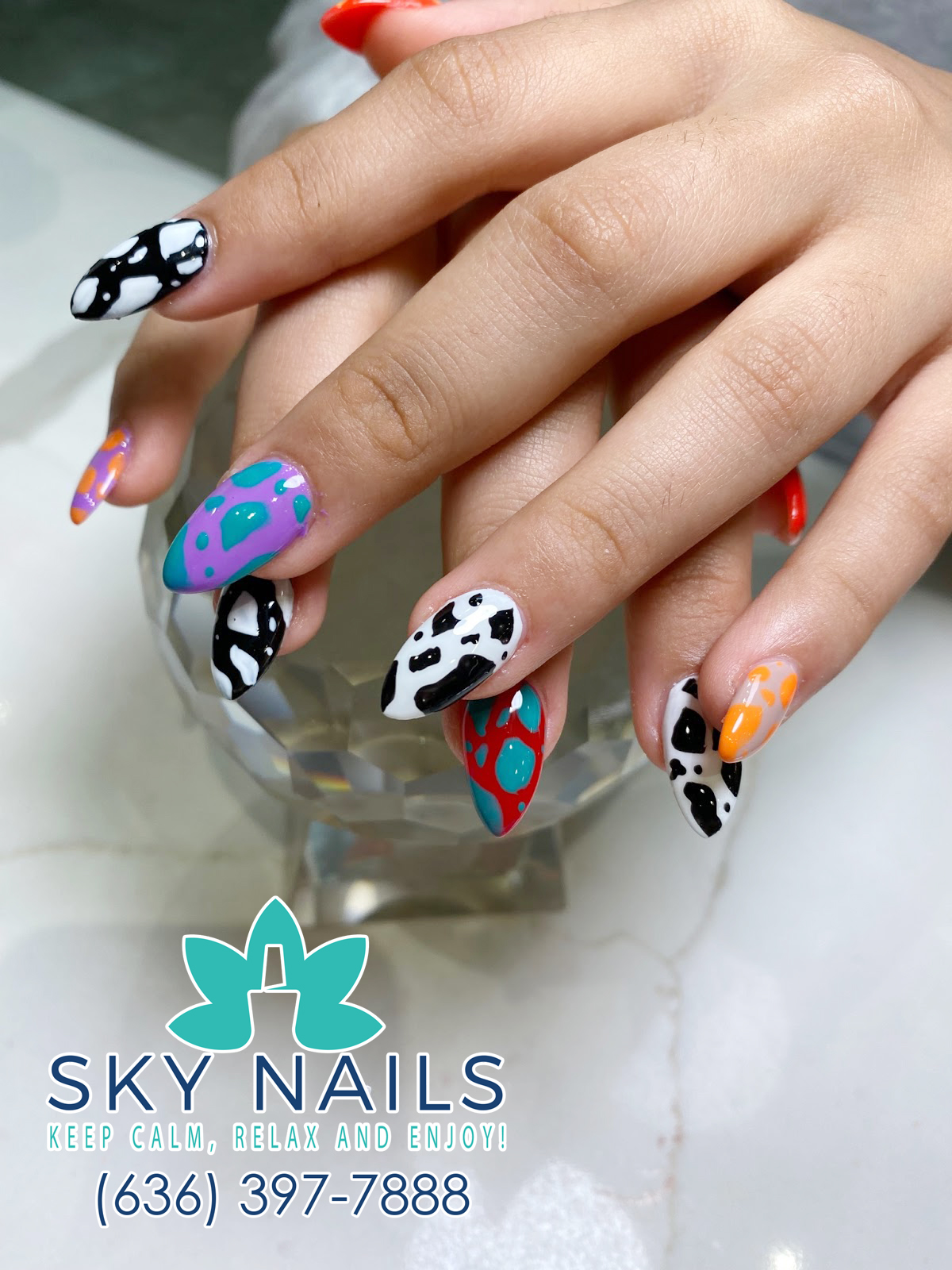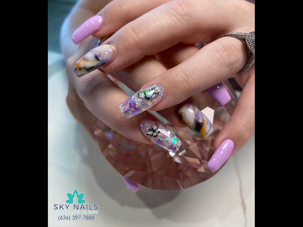 Welcome to Sky Nails in St. Peters MO. We uses only the most trusted brands in the beauty industry. The implements, equipment, and electrical instruments are always thoroughly cleaned and subjected to an approved sanitizing and disinfecting process before being reused. Buffers and files are used only once, then discarded. All pedicure procedures are performed with liner protection. Our beauticians are constantly updating their education to match the trends and techniques that continue to evolve!
